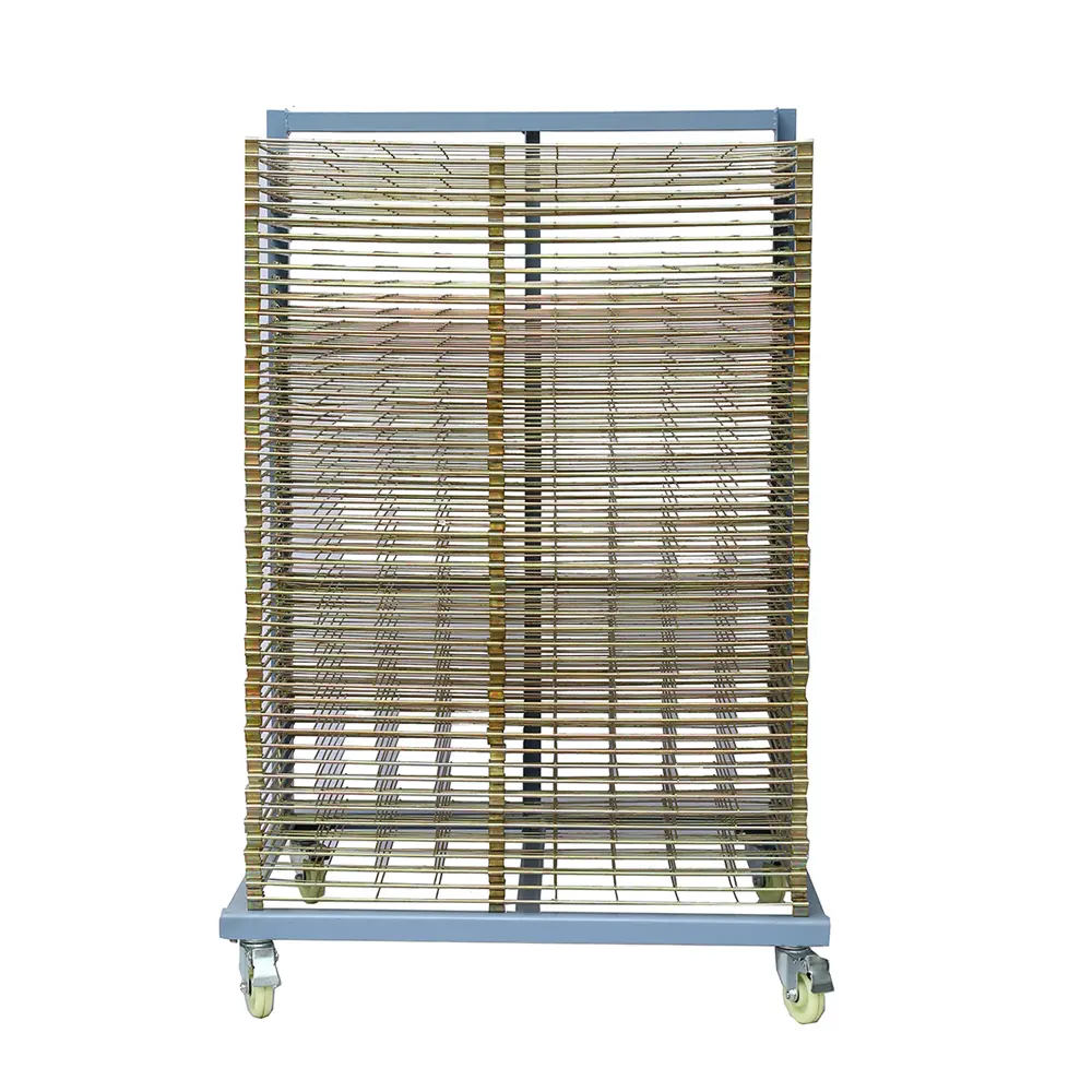 Check this screen printing drying rack,small body,small space needed,contain lots of products.Easy to use, good quality, detachable. Smart Choise for screen printing!